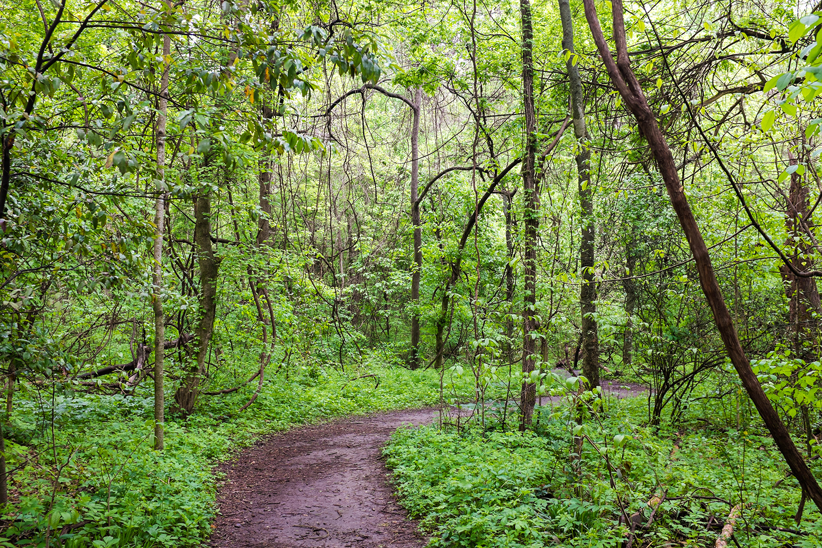 A stand of sugar maples lines the Green Trail in the Old Forest.