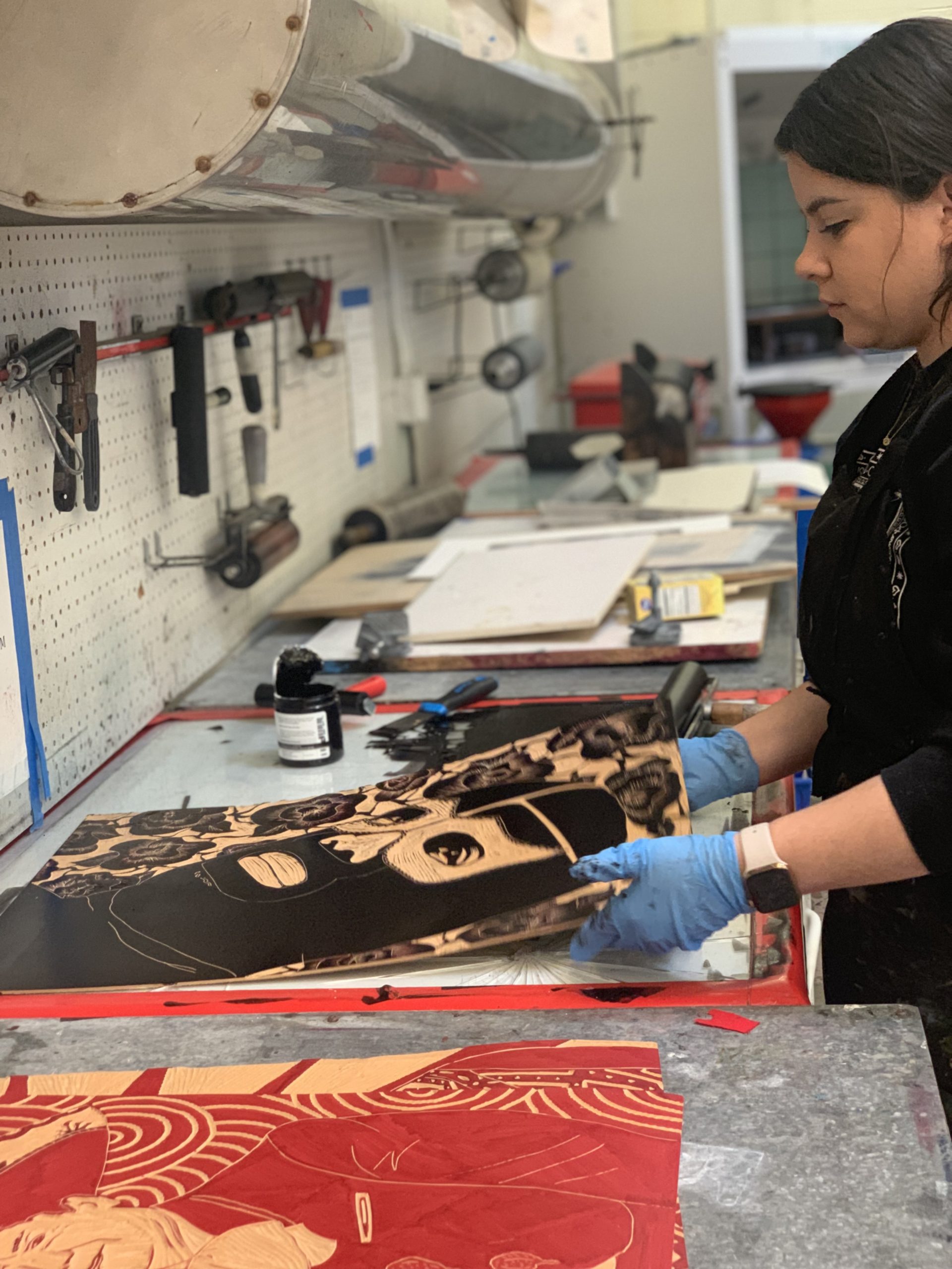 It’s so hard to answer this question because I have so many memorable experiences but I want to say when I picked Printmaking as my major. My first year at MCA was so hard because I didn’t really know what I was doing and I was so confused, but when I was introduced to printmaking my heart just fell in love, and in that moment I knew the challenges I was going to face but the smell and the sound of the ink when you apply it to the plate and the excitement of making an edition, carving every single line in my woodcuts–it was and still is amazing. But my graduations were my most memorable experiences. When I graduated with my BFA I felt like I overcame all of the challenges like not speaking a lot of English and not really having a huge art background. I discovered my inner artist. And when I graduated with my MFA I felt so achieved because I was the first girl in my family to graduate with a Master’s and proud of myself because I was a full-time student with a full-time job.