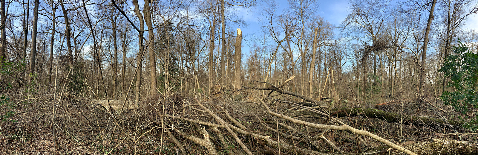 Losing this many trees at once can feel devastating, and it is startling to see how quickly a forest can change. But our Director of Operations, Eric Bridges, offers reason for hope. We’ve known for quite a while that the grand tulip poplars that give the Old Forest so much of its character have been having trouble regenerating. But as it happens, tulip poplars tend to do well in large openings like the one created by this storm event. It’s even possible that a similar event 180 or so years ago created the conditions for them to establish so well here.